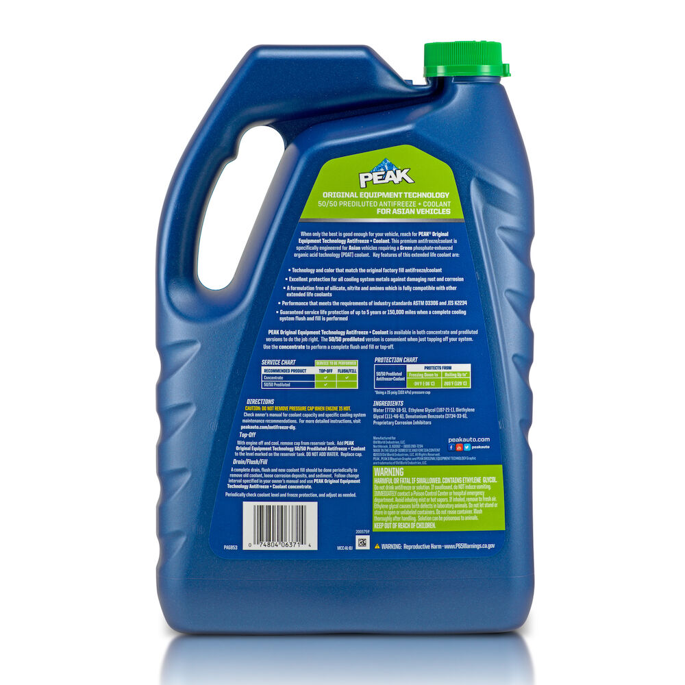Peak Original Equipment Technologyantifreeze Coolant 50 50 Prediluted For Asian Vehicles Green Old World Industries